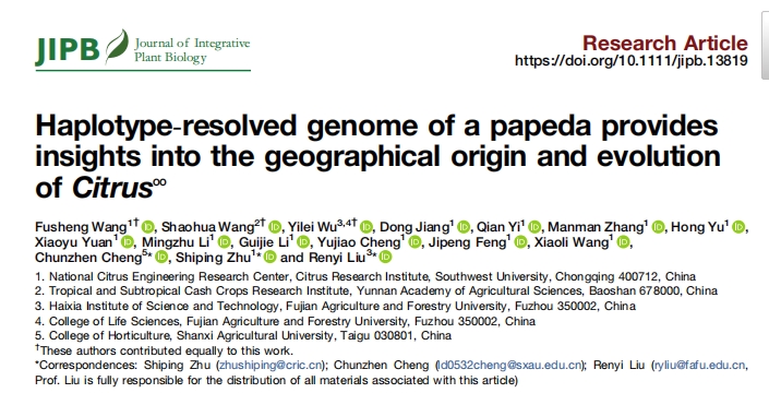 近日,西南大學柑桔研究所聯(lián)合云南省農(nóng)業(yè)科學院熱帶亞熱帶經(jīng)濟作物研究所、福建農(nóng)林大學、山西農(nóng)業(yè)大學等單位在Journal of Integrative Plant Biology發(fā)表題為“Haplotype-resolved genome of a papeda provides insights into the geographical origin and evolution of Citrus”的研究論文,為柑橘物種的起源和進化提供了新的見解。