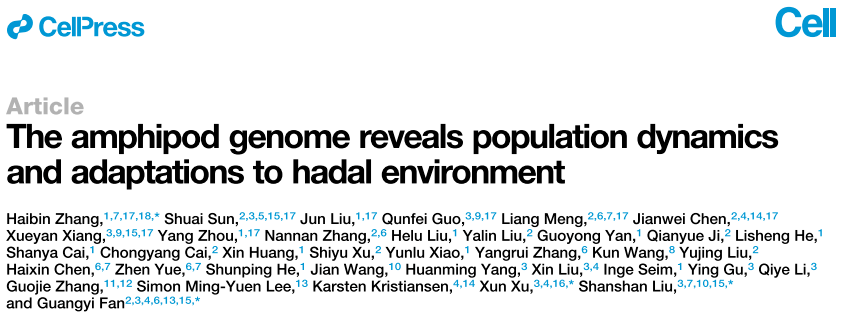 2025年3月,中國(guó)科學(xué)院深??茖W(xué)與工程研究所張海濱研究員團(tuán)隊(duì)等在深淵鉤蝦環(huán)境適應(yīng)與種群遺傳方面取得新進(jìn)展,其研究成果在主刊Cell上在線發(fā)表。題為“The?amphipod?genome?reveals?population?dynamics?and?adaptations?to?hadal?environment”。該研究對(duì)馬里亞納海溝、雅浦海溝、菲律賓海盆等科考航次獲得的深淵鉤蝦(Hirondellea?gigas)樣本進(jìn)行研究,通過(guò)染色體水平基因組和群體遺傳學(xué)分析,并綜合轉(zhuǎn)錄組、宏基因組、代謝組等多組學(xué)數(shù)據(jù),揭示了這種分布水深超過(guò)萬(wàn)米的端足類(lèi)適應(yīng)深淵環(huán)境的分子機(jī)制,及其群體分化與種群動(dòng)態(tài)歷史。其中百邁客生物為該研究提供了基因組、轉(zhuǎn)錄組等測(cè)序服務(wù)。