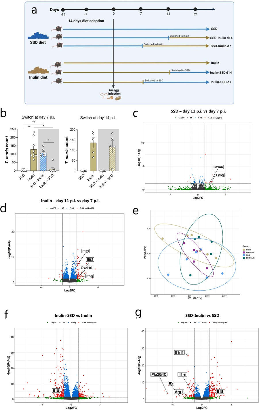 與飲食切換實驗表明:第7天從菊粉切回正常飼料→蟲體被清除;