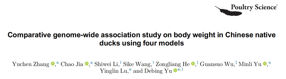 鴨子為人類消費(fèi)提供肉、蛋、羽毛等產(chǎn)品,中國(guó)是世界上最大的鴨肉消費(fèi)國(guó)。金陵白鴨做為我國(guó)優(yōu)質(zhì)的選育品種,具有優(yōu)良的生長(zhǎng)速度和肉質(zhì)品質(zhì)。從孵化到上市的整個(gè)時(shí)期,鴨子的體重逐漸增加,這一過(guò)程由復(fù)雜的生理和生化機(jī)制調(diào)控,器官和骨骼的發(fā)育是體重增加的關(guān)鍵因素,全基因組關(guān)聯(lián)分析(GWAS)是許多牲畜和家禽物種研究生長(zhǎng)和發(fā)育的遺傳機(jī)制的常用方法,然而,現(xiàn)有的一些關(guān)于鴨生長(zhǎng)發(fā)育性狀的GWAS研究測(cè)序深度較低,發(fā)現(xiàn)的候選基因很少。