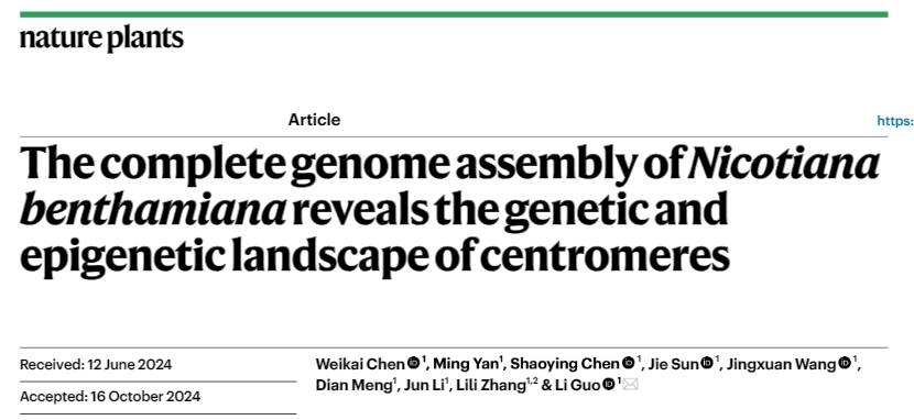文章標(biāo)題:The complete genome assembly of?Nicotiana benthamiana?reveals the genetic and epigenetic landscape of centromeres
