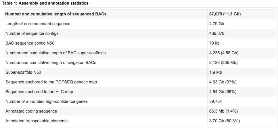 到底是什么解救了大麥基因組?廢話不多說(shuō),看看人家的組裝結(jié)果(表1)。
