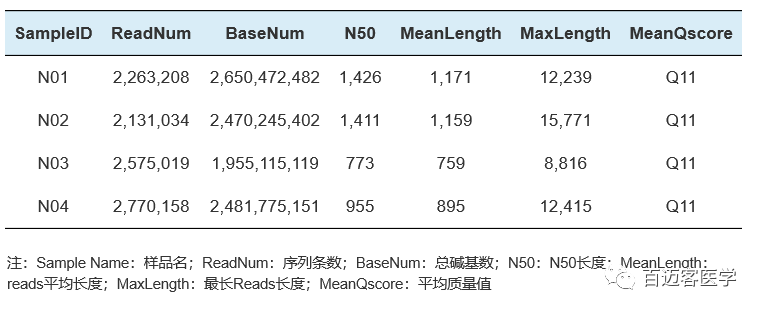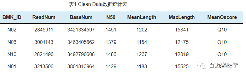 Nanopore測序通過對納米孔的DNA/RNA單分子實時電信號進行檢測及對應,即可計算獲得相應堿基的類型,完成序列的實時測定。為確保Reads有足夠高的質量,將下機原始測序數(shù)據(raw reads)過濾短片段和低質量的reads,得到clean reads,保證后續(xù)分析的準確性。