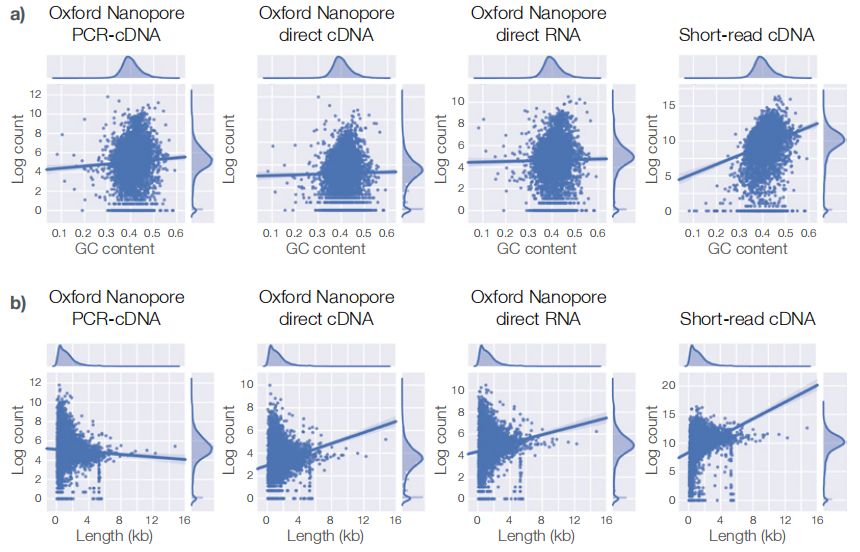 綜上,nanopore全長轉錄組測序受基因的GC含量和長度偏好更小。