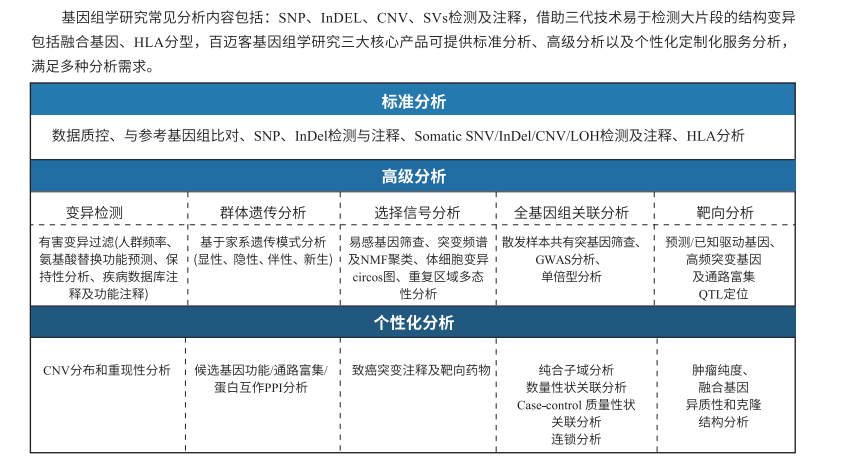 百邁客借助BGI、Nova、ONT、PB等測序平臺,研發(fā)專業(yè)、完善的二代、三代人重測序技術,并基于自動化建庫系統(tǒng)、百邁客云平臺,從而打造真正意義上多層次、多選擇的重測序檢測平臺,提供全基因重測序全流程服務。