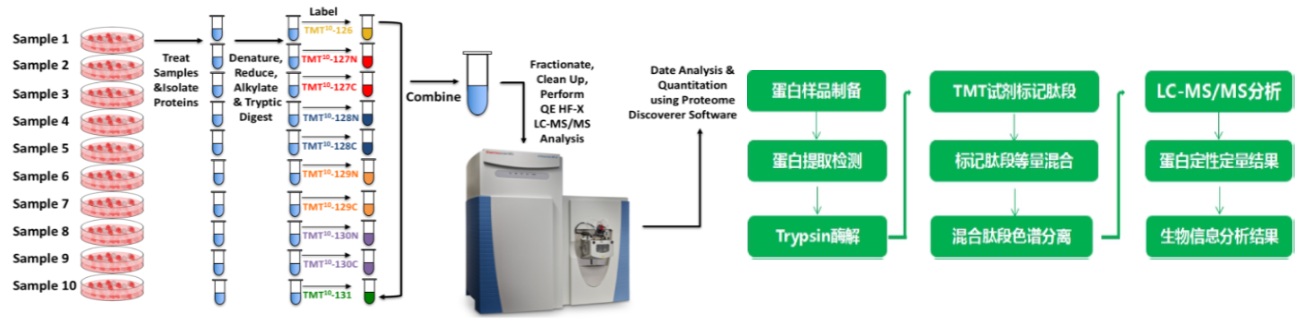 TMT(Tandem Mass Tags)有美國Thermo 公司研發(fā)的多肽體外標記定量技術,采用16種同位素標簽,通過特異性標記多肽的氨基酸基團,一次上機可實現(xiàn)16不同樣本中蛋白質的相對定量,是近年來定量蛋白質組學常用的高通量篩選技術。