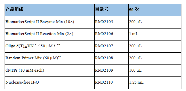 BiomarkerScript Ⅱ 1st Strand cDNA Synthesis Kit是一款專門用于反轉(zhuǎn)錄實(shí)驗(yàn)的試劑盒,包含了BiomarkerScript II逆轉(zhuǎn)錄酶和兩種逆轉(zhuǎn)錄的引物。