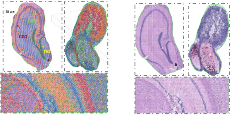 百創(chuàng)S1000空間轉(zhuǎn)錄芯片保留原片HE染色,結(jié)合高分辨率的spots聚類,能得到更為精準(zhǔn)的結(jié)果。